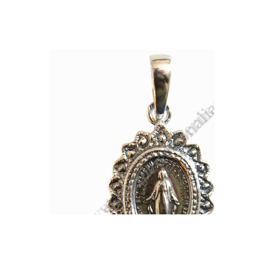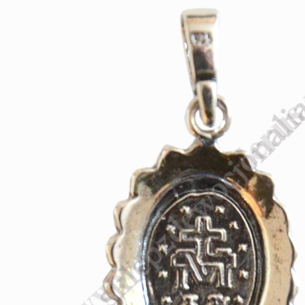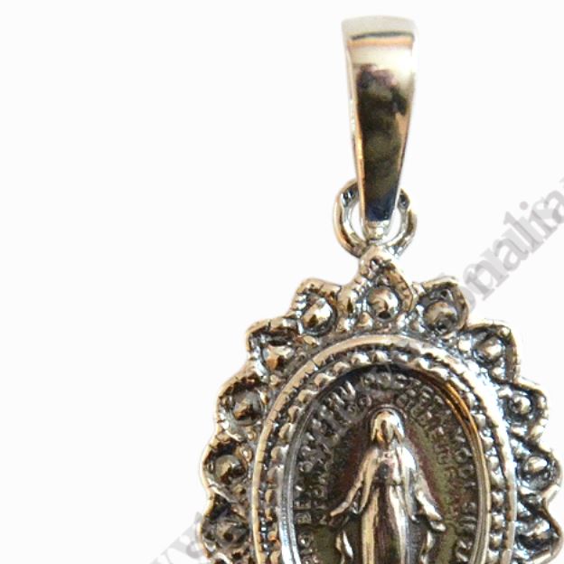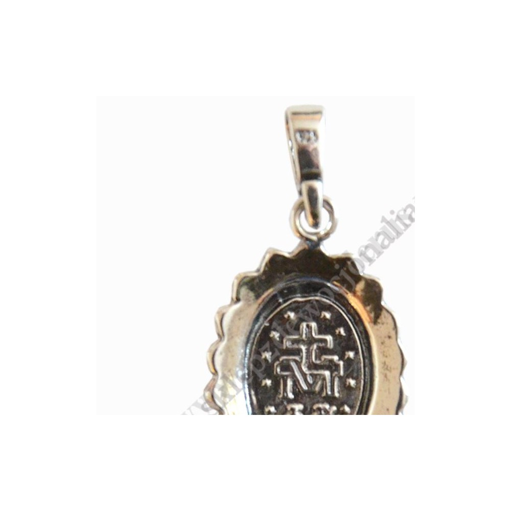 Srebrny medalik Matki Bożej Niepokalanej - Cudowny Medalik, wysokość medalika 2.2 cm, szerokość medalika 1.7 cm. Srebro próba 925, 2.500 gr.