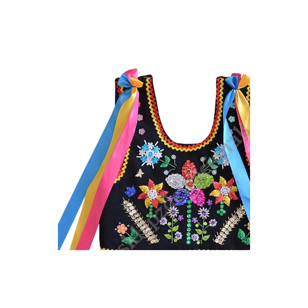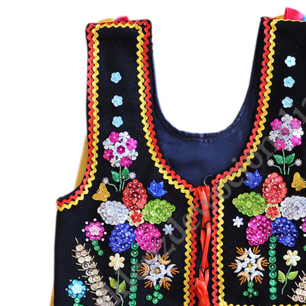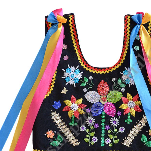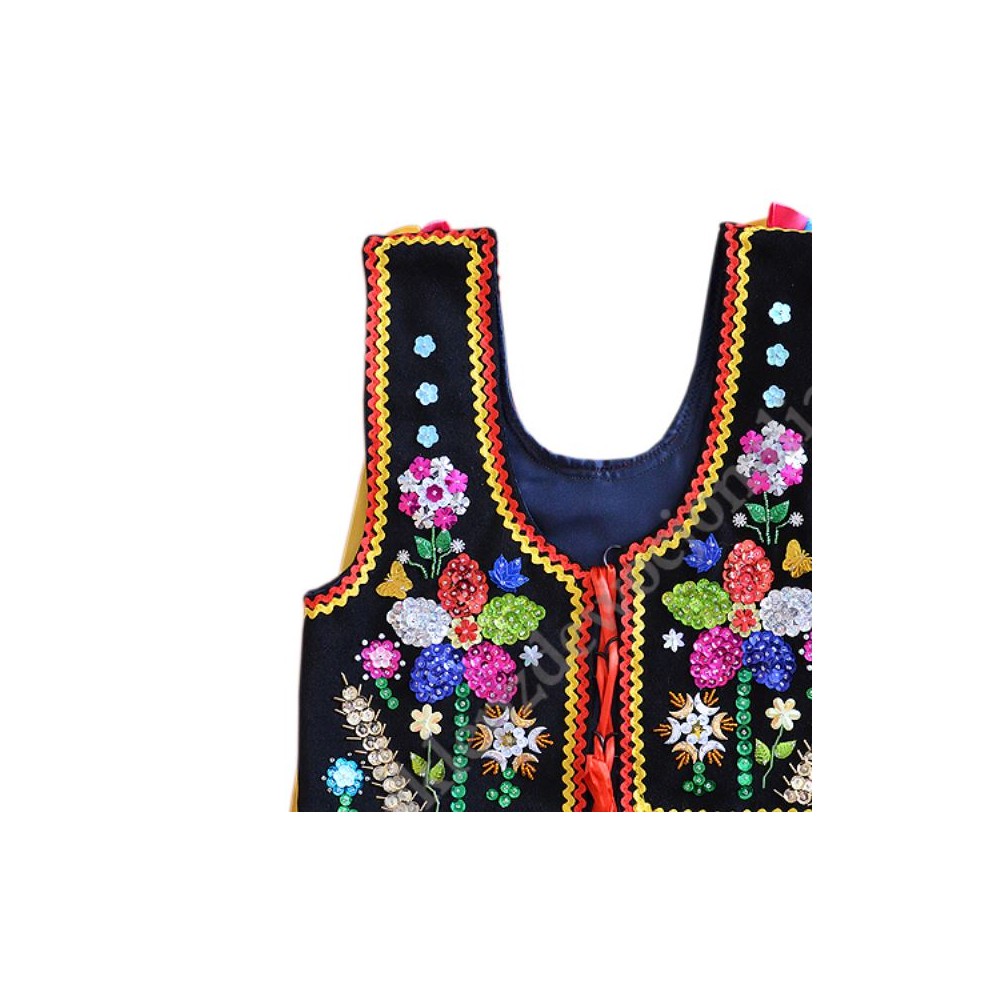 Gorset Krakowski dla dziewczynki w wieku od 2 do 5 lat wykonany z weluru, zdobiony cekinami.