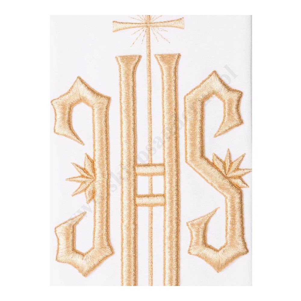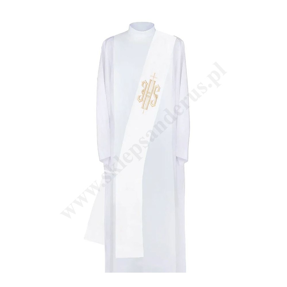 Stuła diakońska wykonana z wysokiej jakości tkaniny z symbolem IHS i małym krzyżem.