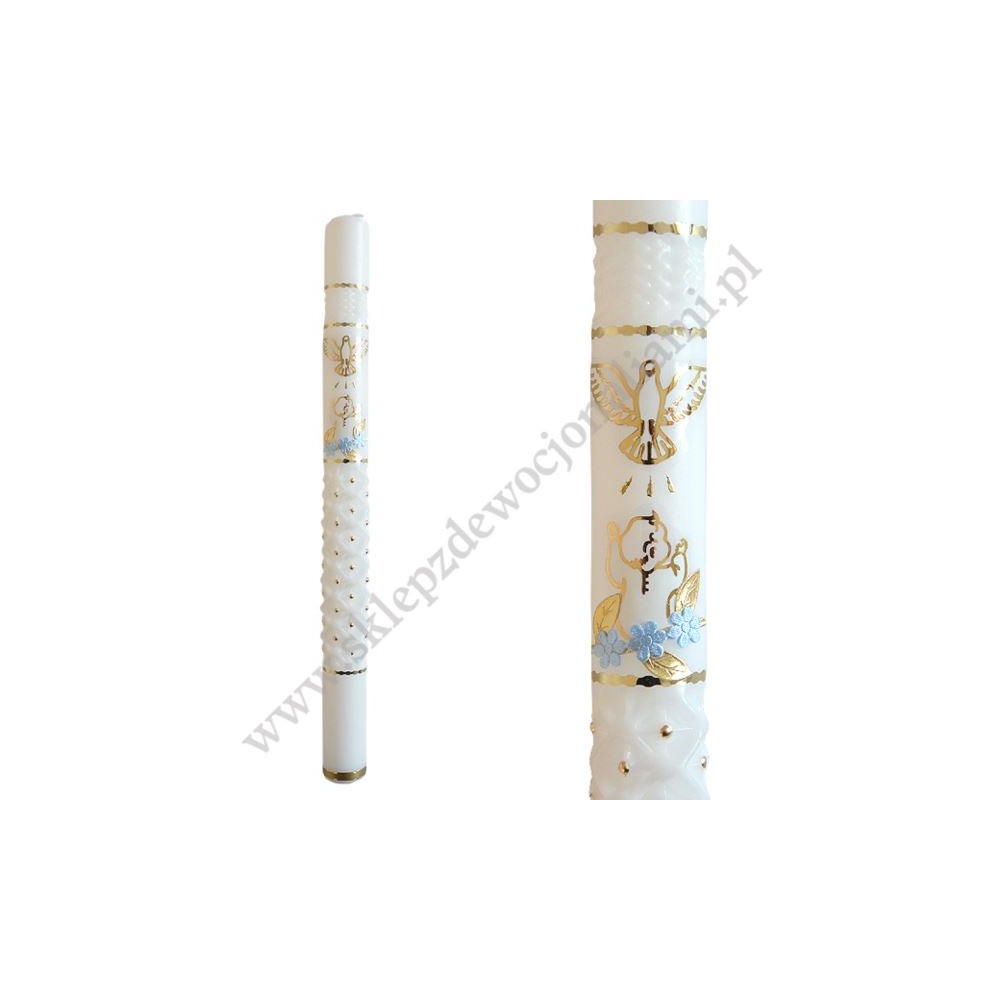 Świeca do chrztu ręcznie zdobiona. Wysokość świecy 40 cm, średnica świecy 3.2 cm.