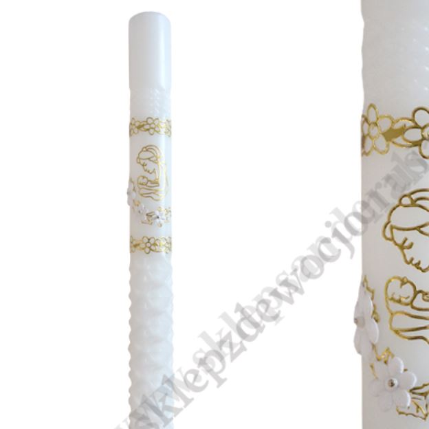Świeca do chrztu ręcznie zdobiona. Wysokość świecy 40 cm, średnica świecy 3.2 cm.