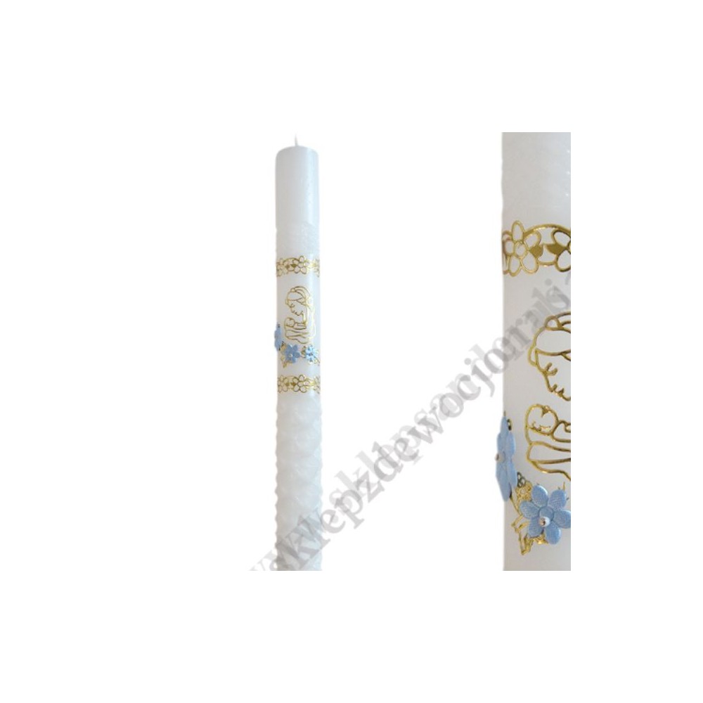 Świeca do chrztu ręcznie zdobiona. Wysokość świecy 40 cm, średnica świecy 3.2 cm.