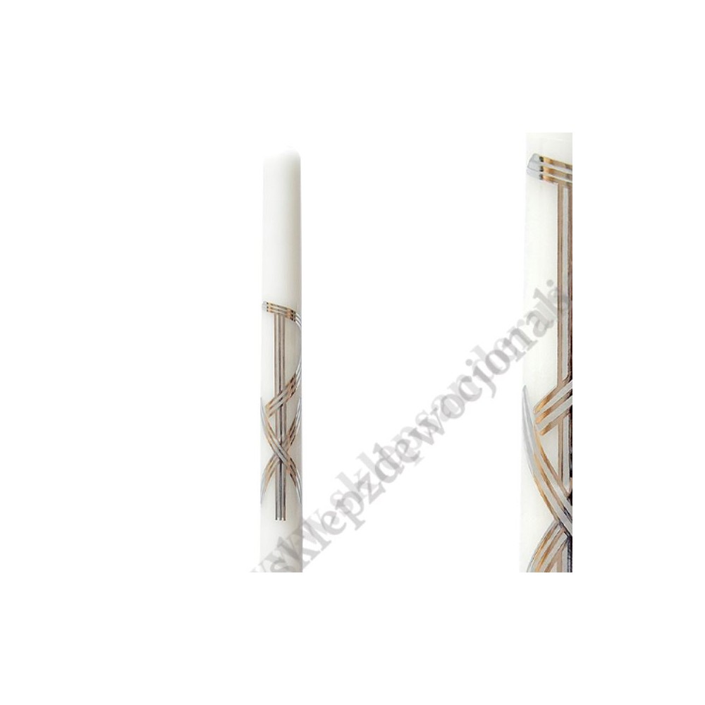 Świeca do chrztu zdobiona srebrną aplikacją Px.