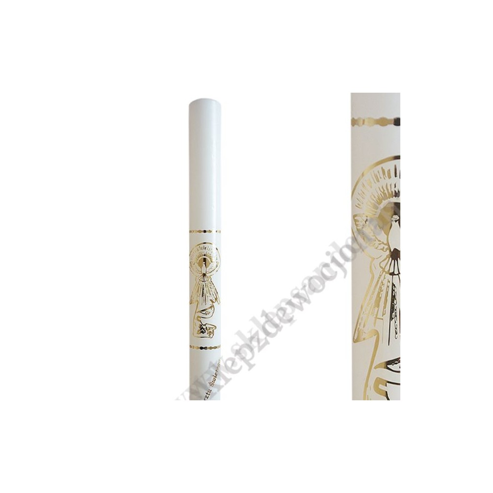 Świeca do chrztu zdobiona naklejkami z motywem chrzcielnym. Wysokość świecy 40 cm, średnica świecy 3.2 cm.