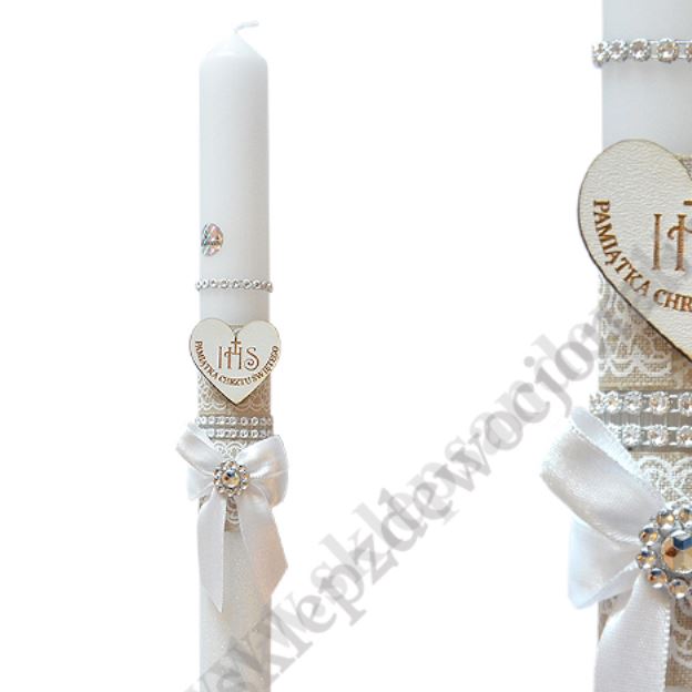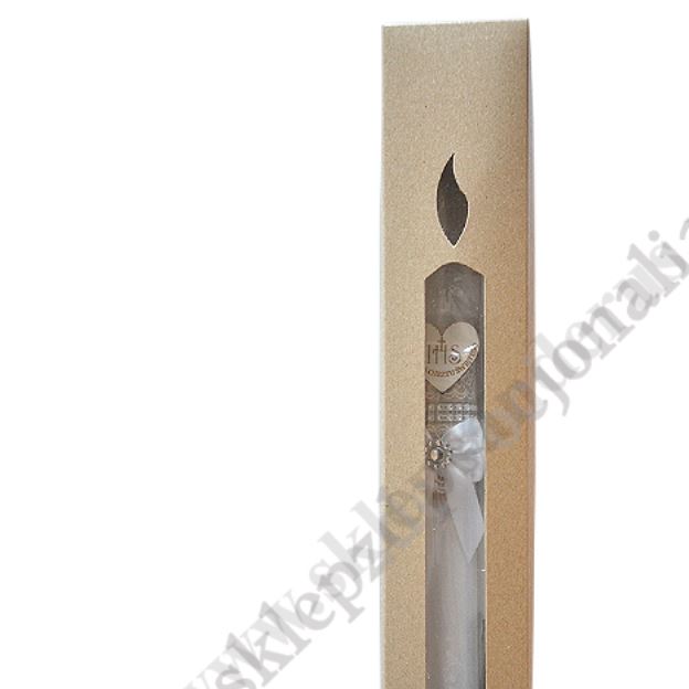 Zestaw do Chrztu Świętego zapakowany w eleganckie kartonowe pudełeczko zawierający świecę do chrztu, okapnik do świecy oraz szatkę do chrztu. Wysokość świecy 40 cm, średnica świecy 3.3 cm. Dołączone są literki pozwalające na wypisanie imienia dziecka oraz np. daty Chrztu Świętego.