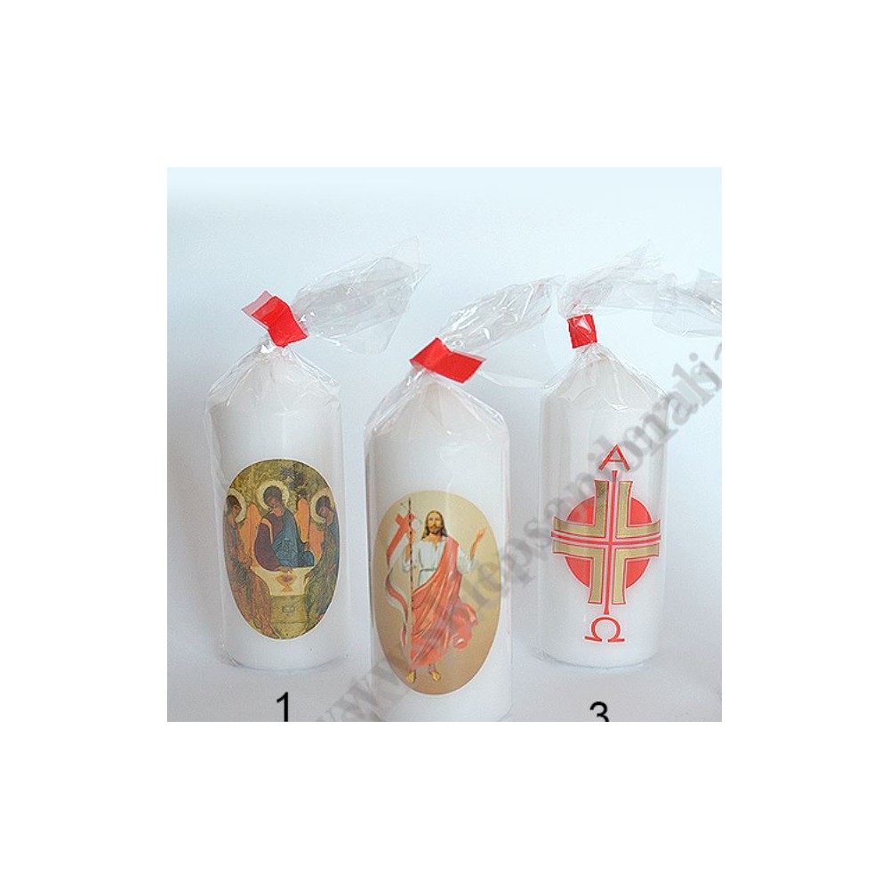 Świeca wielkanocna o wysokości 12 cm i średnicy 5 cm, sprzedaż w mixie wzorów.