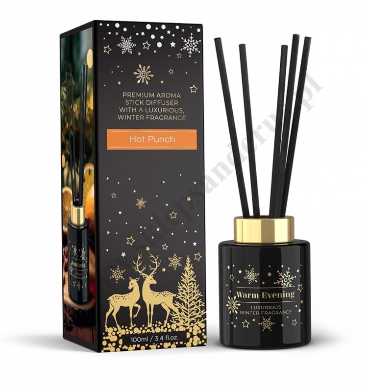 Zimowa kolekcja dyfuzorów o dwóch ciepłych, luksusowych zapachach. Głęboka czerń ilustruje wieczorne niebo, tworząc tło do iskrzących złotem gwiazd i śnieżynek emanujących subtelnym luksusem. Dyfuzory, nie tylko wypełniają otoczenie wspaniałymi aromatami, ale staną się również niezwykle elegancką ozdobą, tworząc atmosferę pełną magii i uroku.