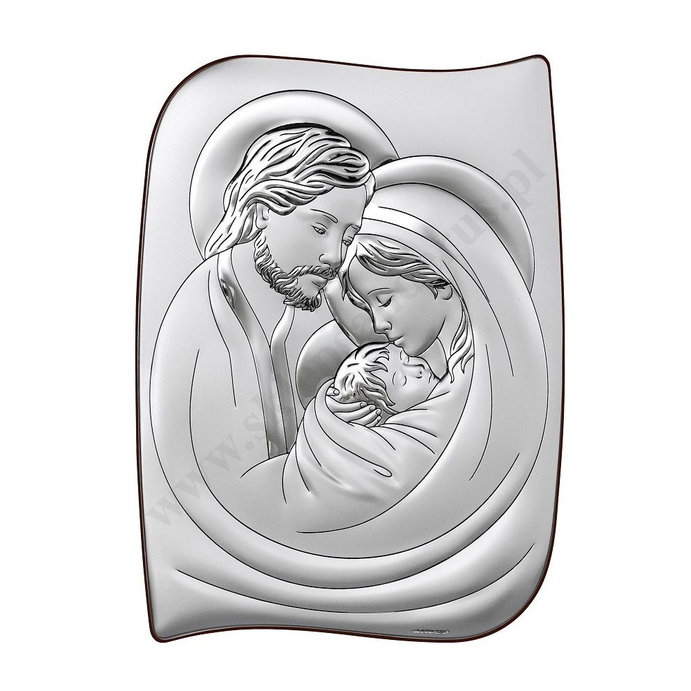 Srebrny obrazek przedstawiający wizerunek Świętej Rodziny. Rozmiar obrazka 7.5 x 10 cm. PONIŻEJ W PRODUKTACH POWIĄZANYCH ISTNIEJE MOŻLIWOŚĆ ZAMÓWIENIA OKAZJONALNEJ DEDYKACJI NA TABLICZCE LUB REWERSIE OBRAZKA.