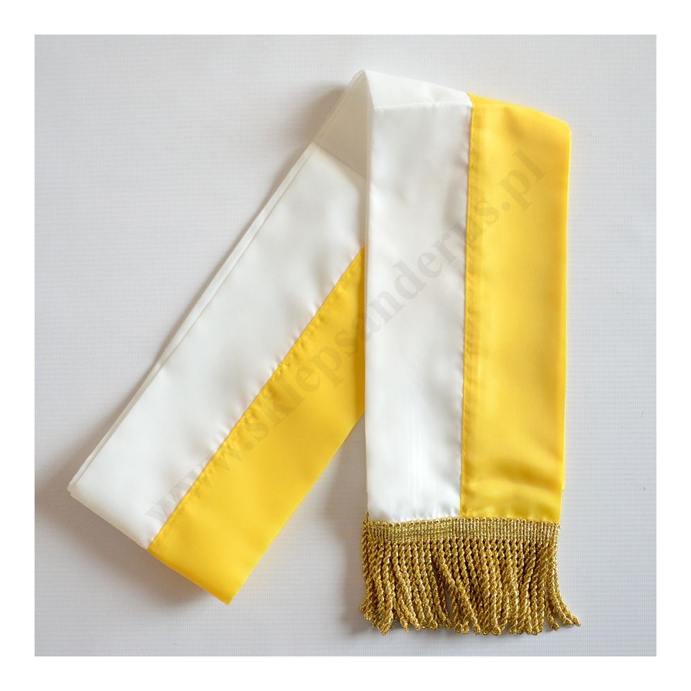 Szarfa biało-żółta do pocztu sztandarowego.