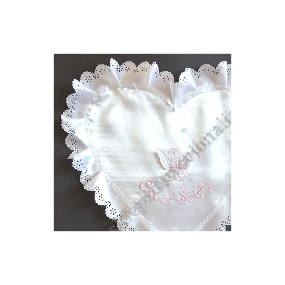 Szatka do chrztu w kształcie serca z wyhaftowanym motywem aniołka