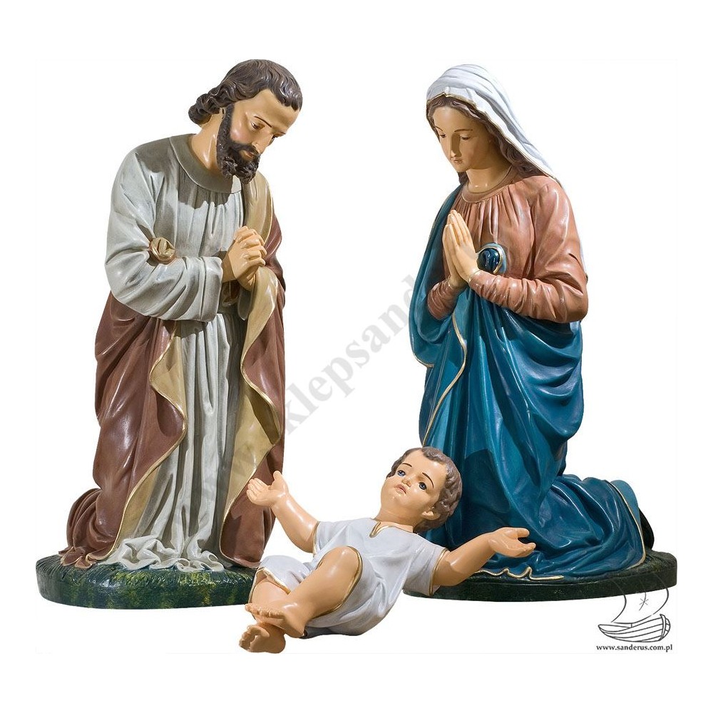 Święta rodzina - komplet do szopki, figury żywiczne, ręcznie malowane. Wysokość najwyższej figury 60 cm.