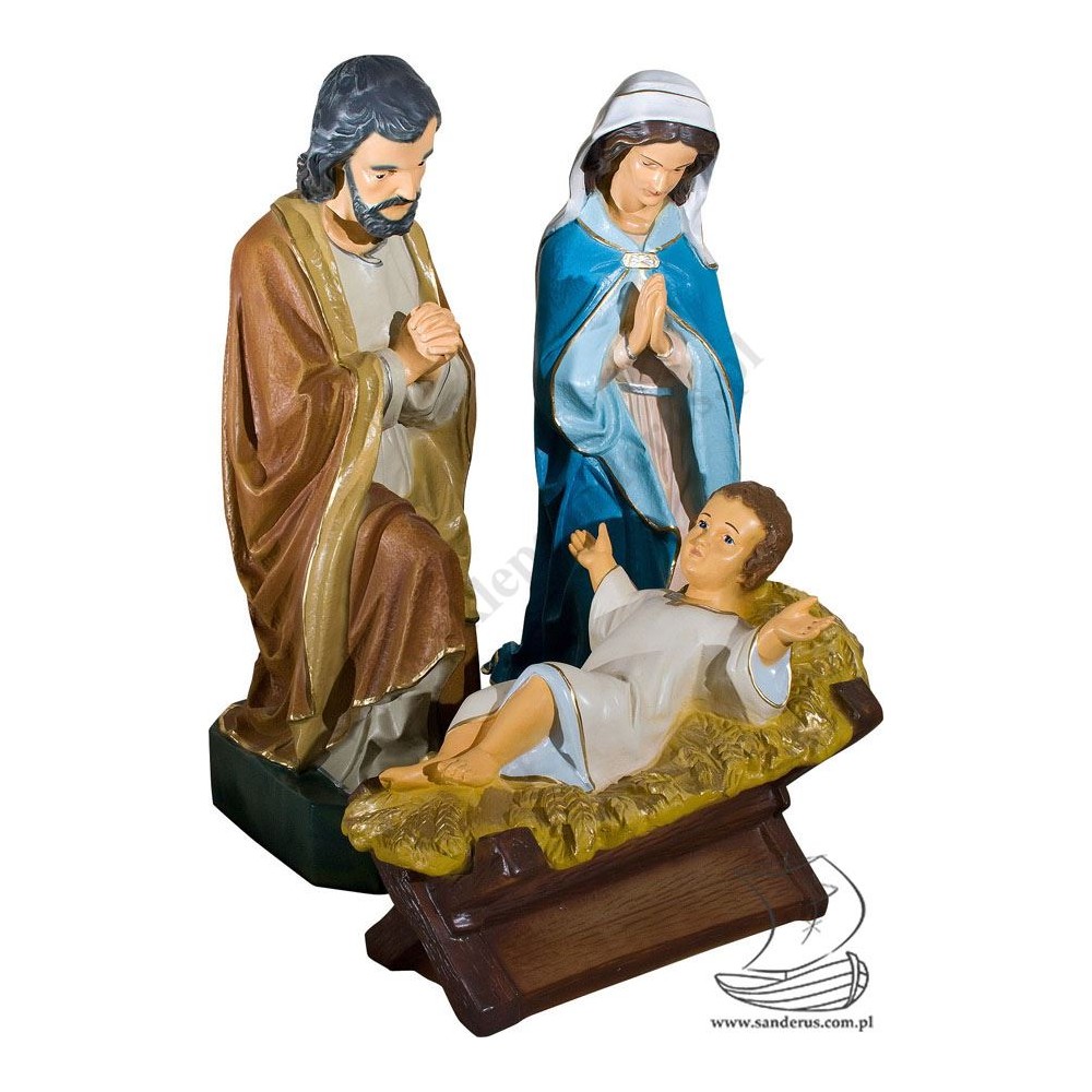 Święta rodzina - komplet do szopki, figury żywiczne, ręcznie malowane. Wysokość najwyższej figury 65 cm.