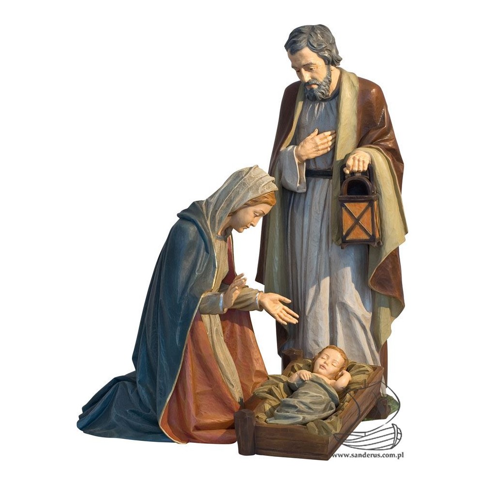 Święta rodzina - komplet do szopki, figury żywiczne, ręcznie malowane. Wysokość najwyższej figury 88 cm.
