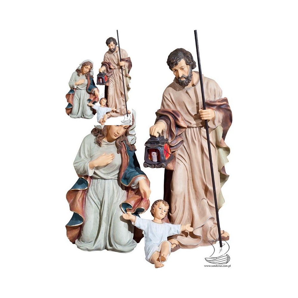 Święta rodzina - komplet do szopki, figury żywiczne, ręcznie malowane. Wysokość najwyższej figury 89 cm.