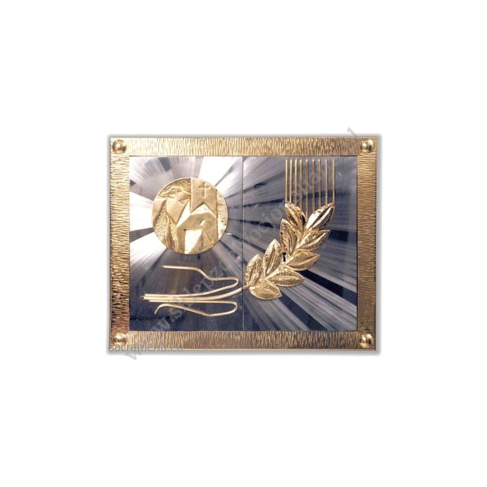 Tabernakulum o wymiarach zewnętrznych: wysokość 40 cm, szerokość 50 cm, głębokość 38 cm.