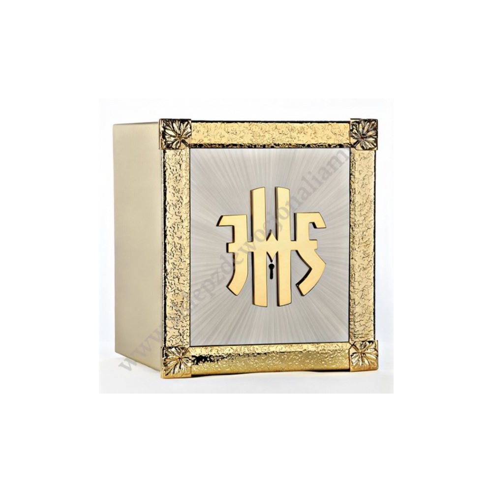 Tabernakulum o wymiarach zewnętrznych: wysokość 50 cm, szerokość 50 cm, głębokość 38 cm.