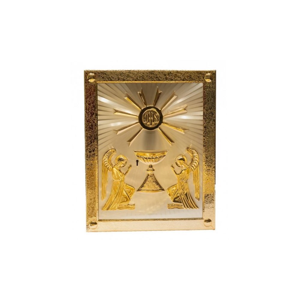 Tabernakulum o wymiarach zewnętrznych: wysokość 40 cm, szerokość 50 cm, głębokość 38 cm.