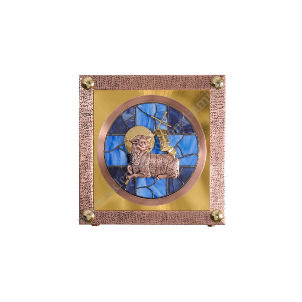 Tabernakulum z motywem baranka na szkle witrażowym w wymiarach zewnętrznych: