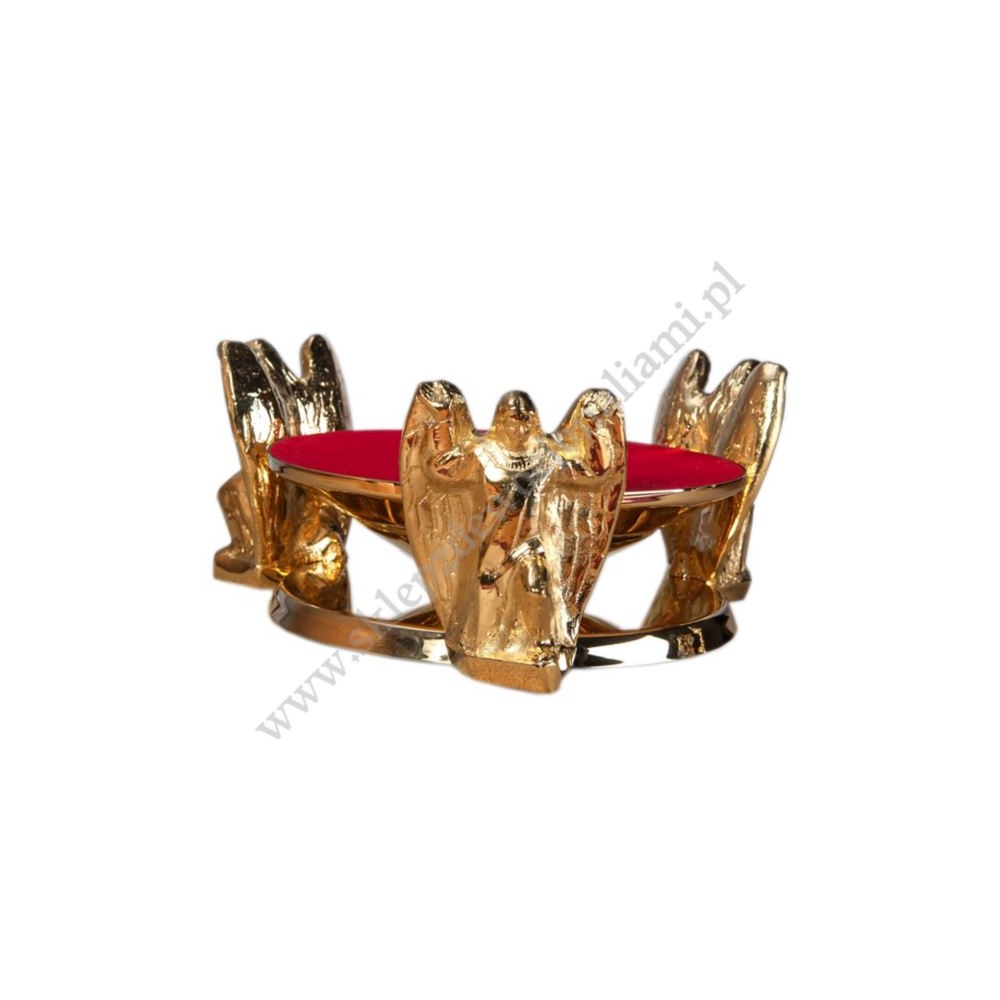 Tron pod monstrancję z motywami aniołów o wysokości 8 cm, szerokości 24 cm i średnicy podstawy 24 cm.