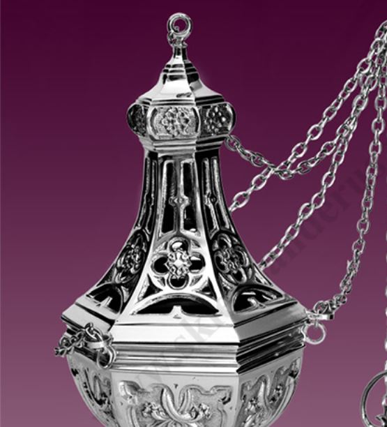 Trybularz gotycki, mosiężny, niklowany
