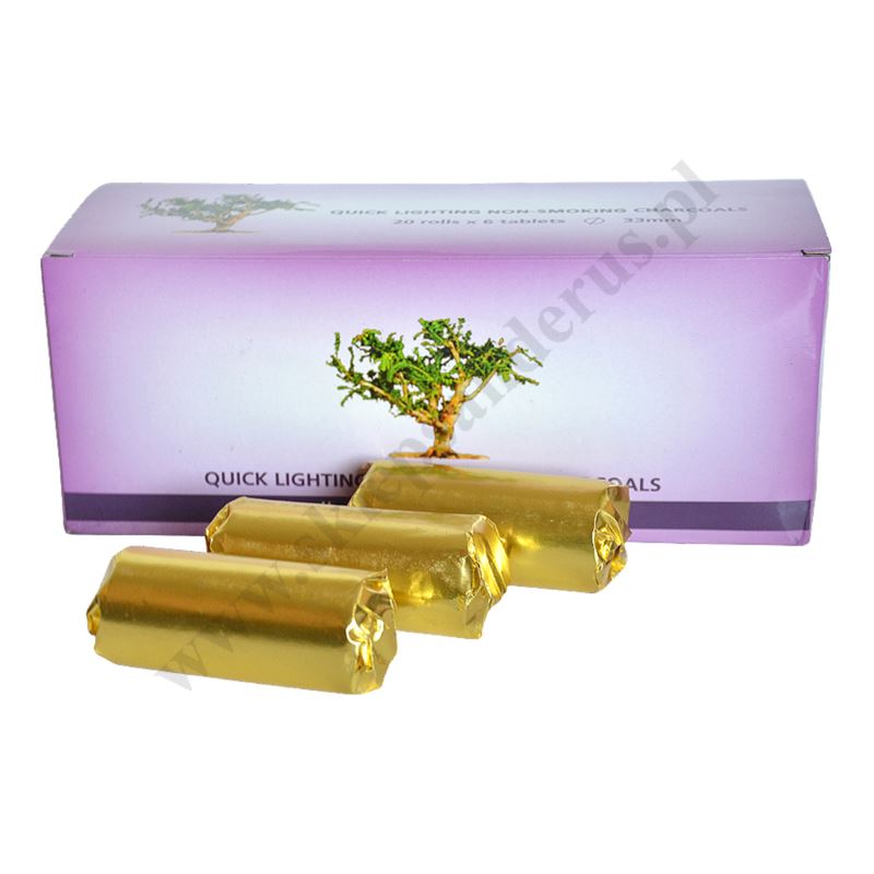 Łatwopalne węgielki do trybularza o średnicy 33 mm. Rolka zawiera 6 węgielków. Podana cena to cena za jedną rolkę.