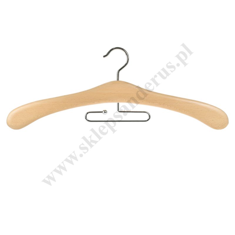 Wieszak drewniany z metalowym haczykiem do przechowywania szat liturgicznych. Dodatkowy haczyk pozwala na zawieszenie dodatkowego elementu garderoby, np. stuły.