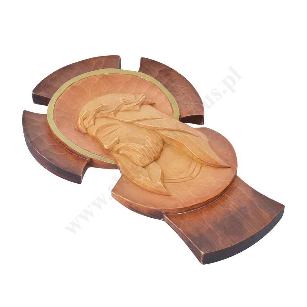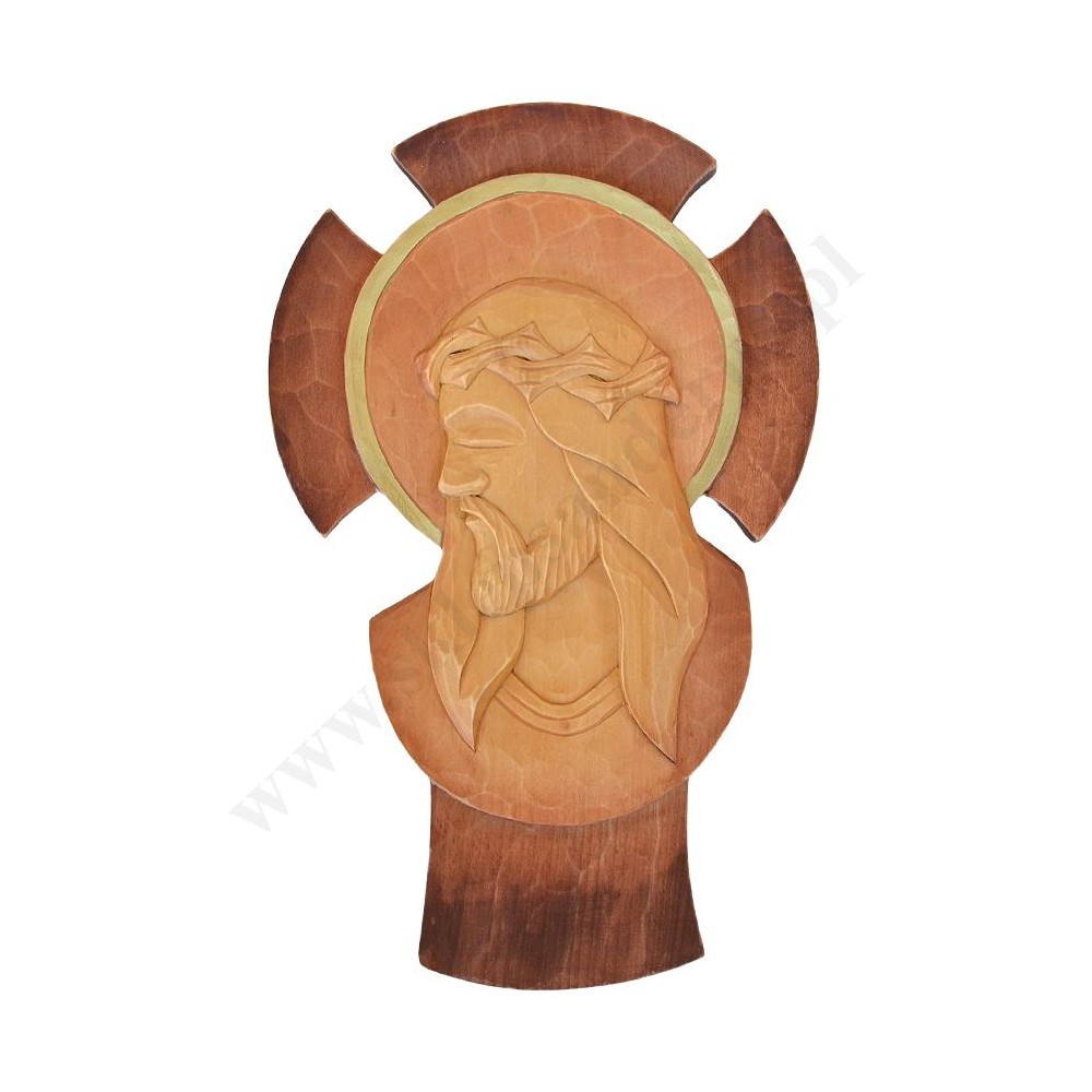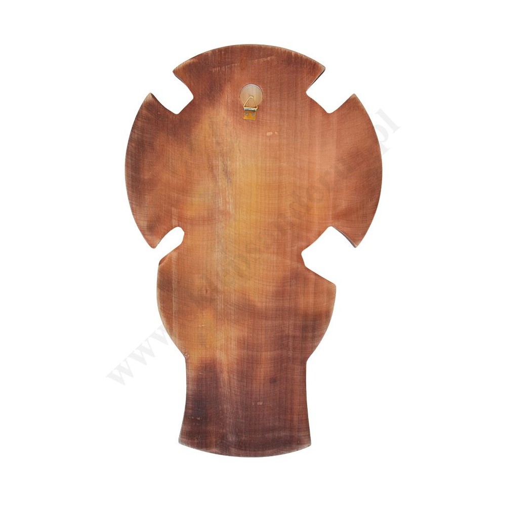 Krzyż drewniany, korona cierniowa, rękodzieło o wysokości 35 cm, szerokości 22 cm i grubości 2.3 cm. UWAGA: Z racji, że krzyż jest wykonywany ręcznie może się delikatnie różnić wymiarami i kolorem.