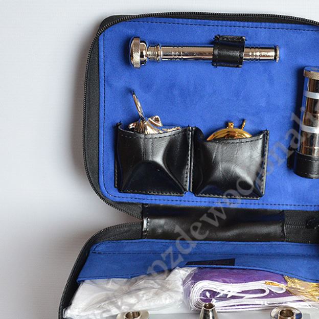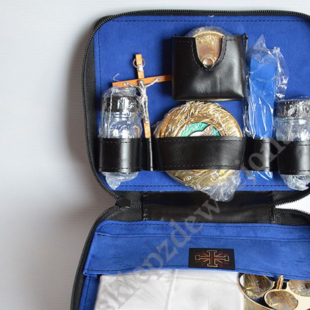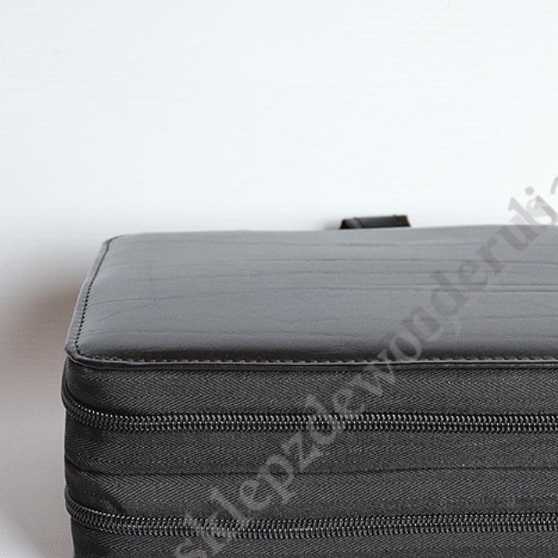 Wymiary kompletu po zamknięciu: szerokość 21 cm, wysokość 9.5 cm, głębokość 16 cm. Komplet zamykany na zamek błyskawiczny.
