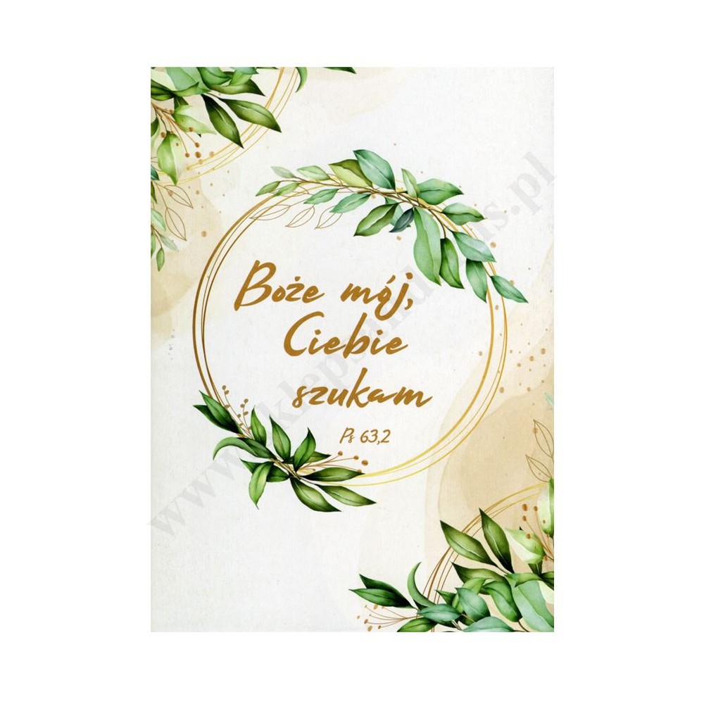 Zeszyt do religii w kratkę formatu A5, 32 strony. Z mottem na okładce: „Boże mój, Ciebie szukam”.