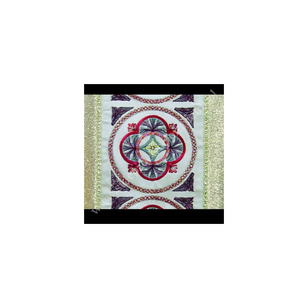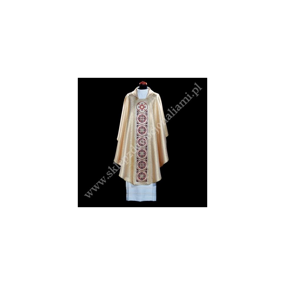 Ornat bardzo bogato haftowany barwnymi nićmi na satynowym pasie