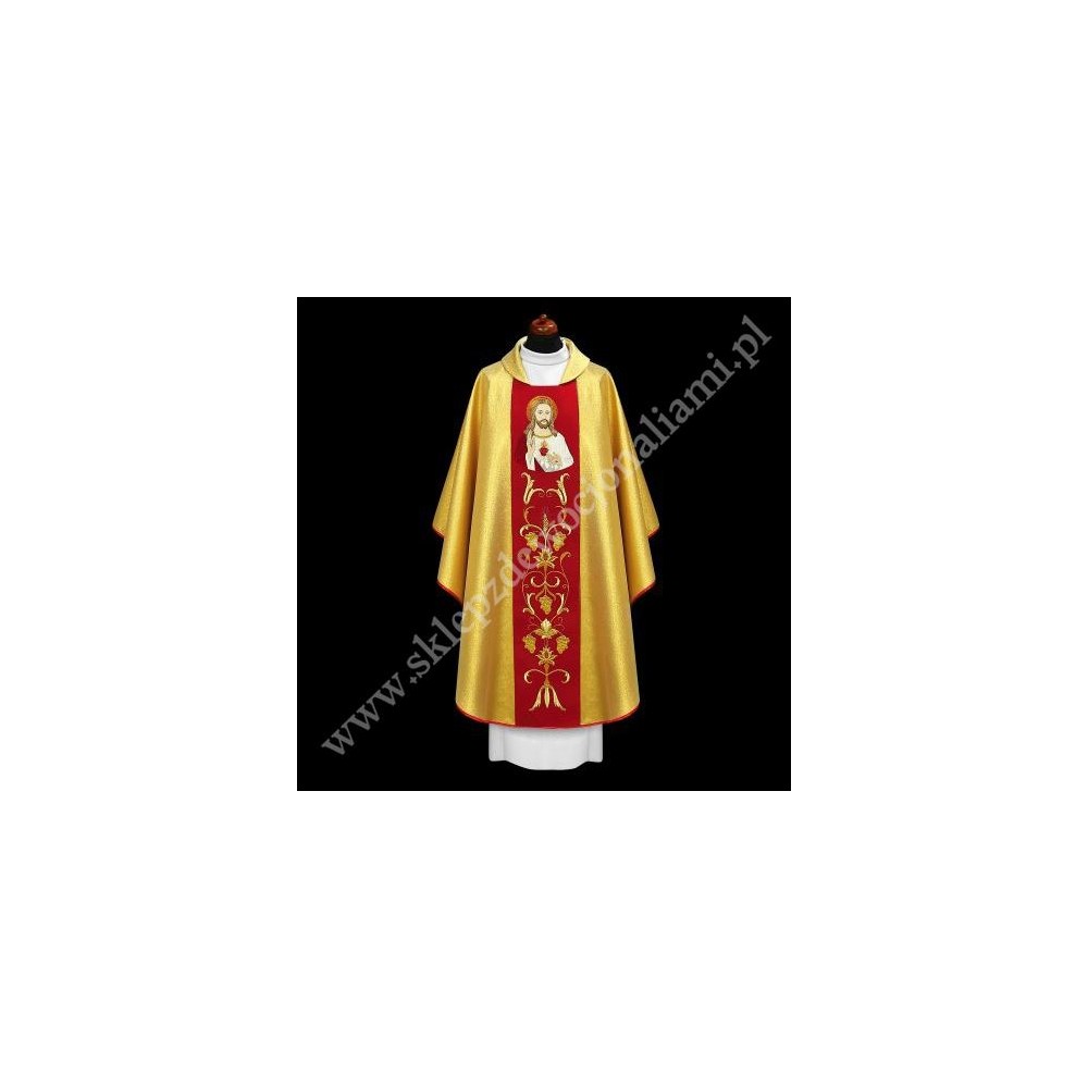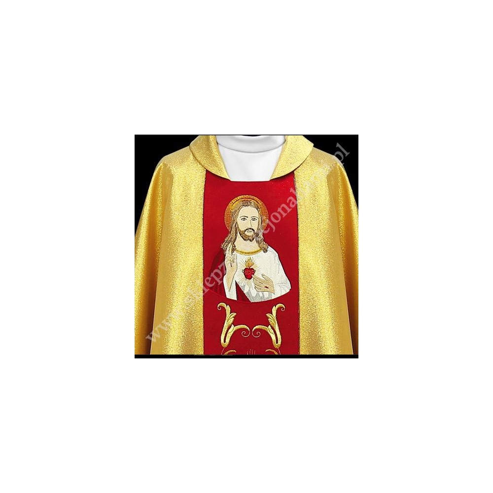 Ornat brokatowy uszyty w stylu gotyckim ze stułą wewnętrzną z haftowanym wizerunkiem Serca Pana Jezusa