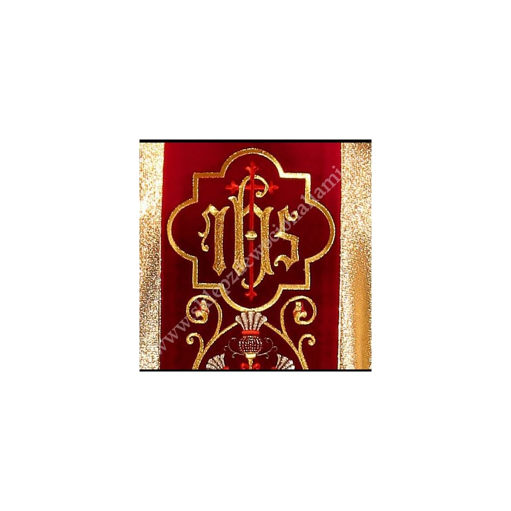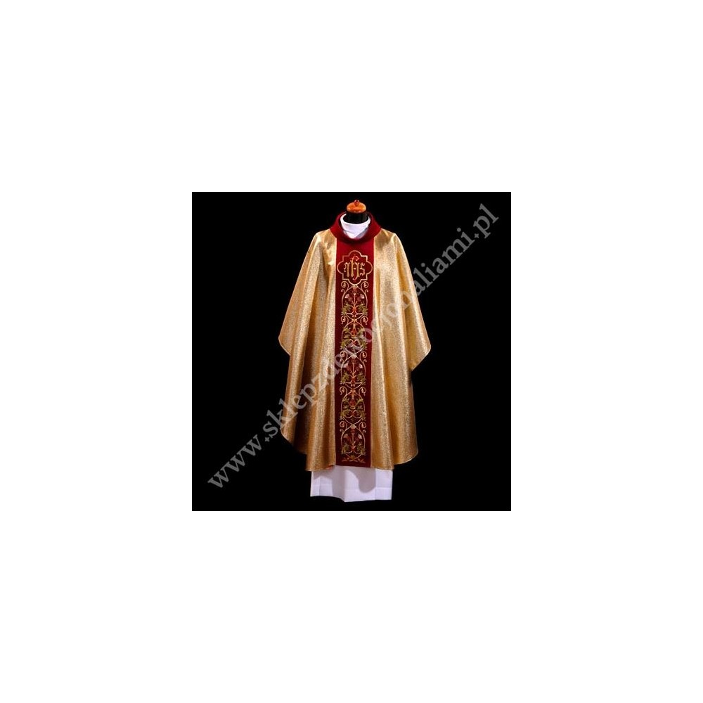Bardzo bogato haftowany ornat uszyty w stylu monastycznym ze stułą wewnętrzną
