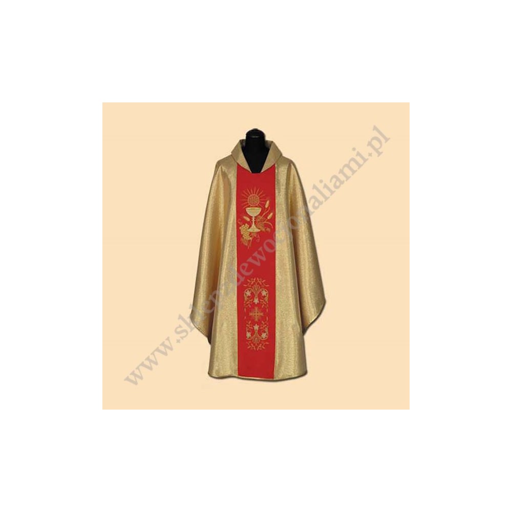 Ornat z materiału imitującego złoto, pas haftowany motywami eucharystycznymi