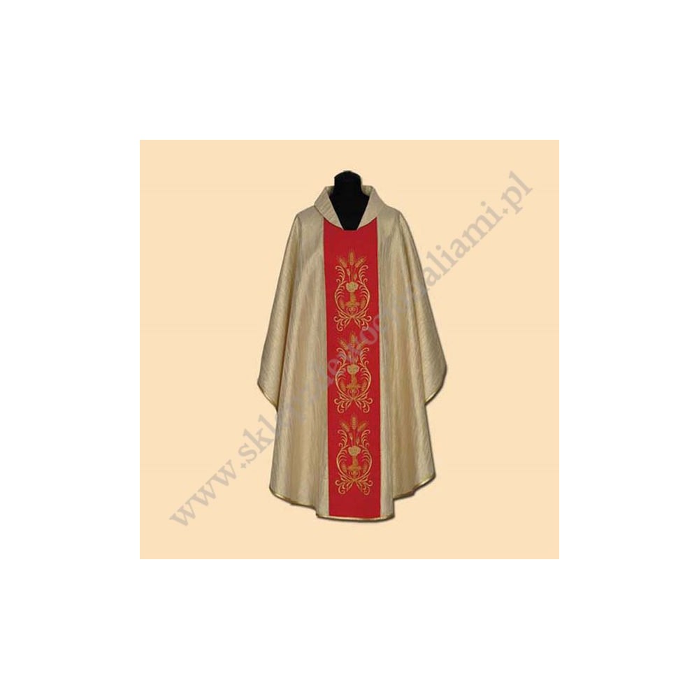 Ornat z materiału imitującego złoto, pas haftowany motywami eucharystycznymi