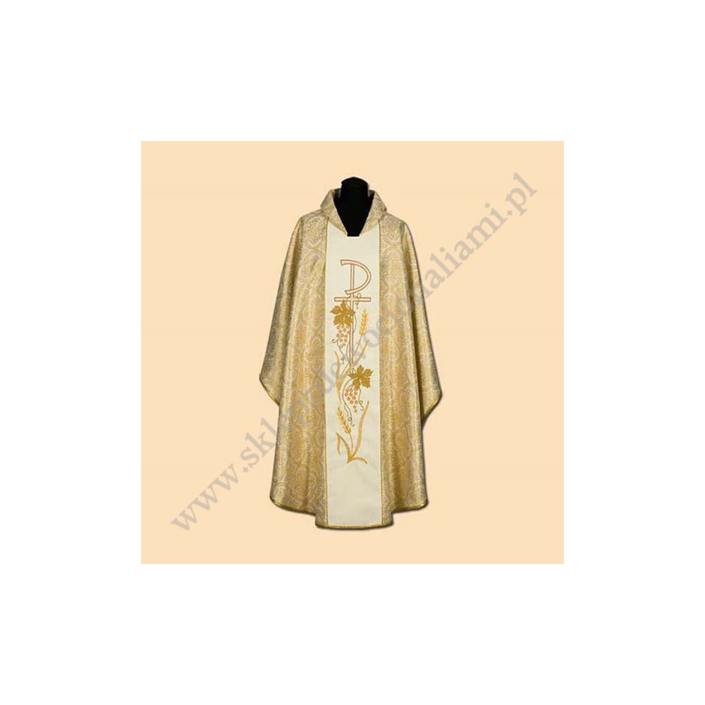 Ornat z materiału imitującego złoto, pas haftowany motywami eucharystycznymi