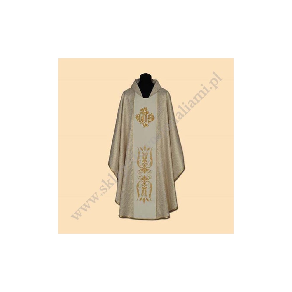 Ornat z materiału imitującego złoto, pas haftowany motywami eucharystycznymi