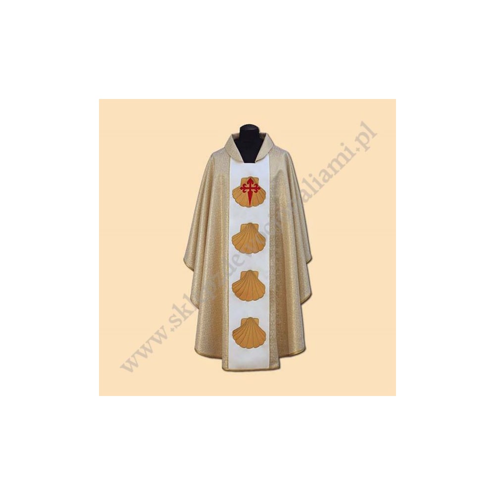 Ornat z materiału imitującego złoto, pas haftowany motywami Świętego Jakuba