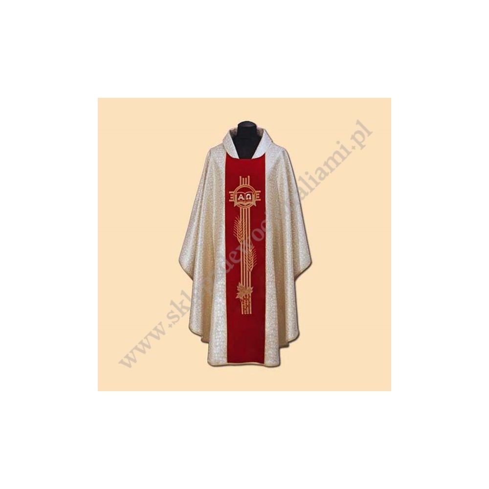 Ornat z pasem aksamitnym na którym haftowane są ornamenty eucharystyczne