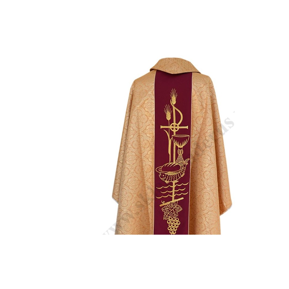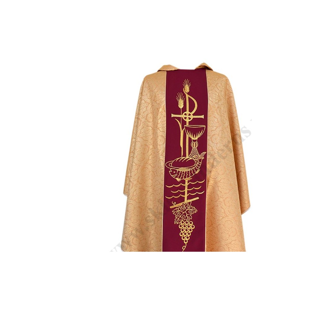 Ornat wykonany z wysokiej jakości tkaniny z pasem eucharystycznym, haftowanym komputerowo motywem.